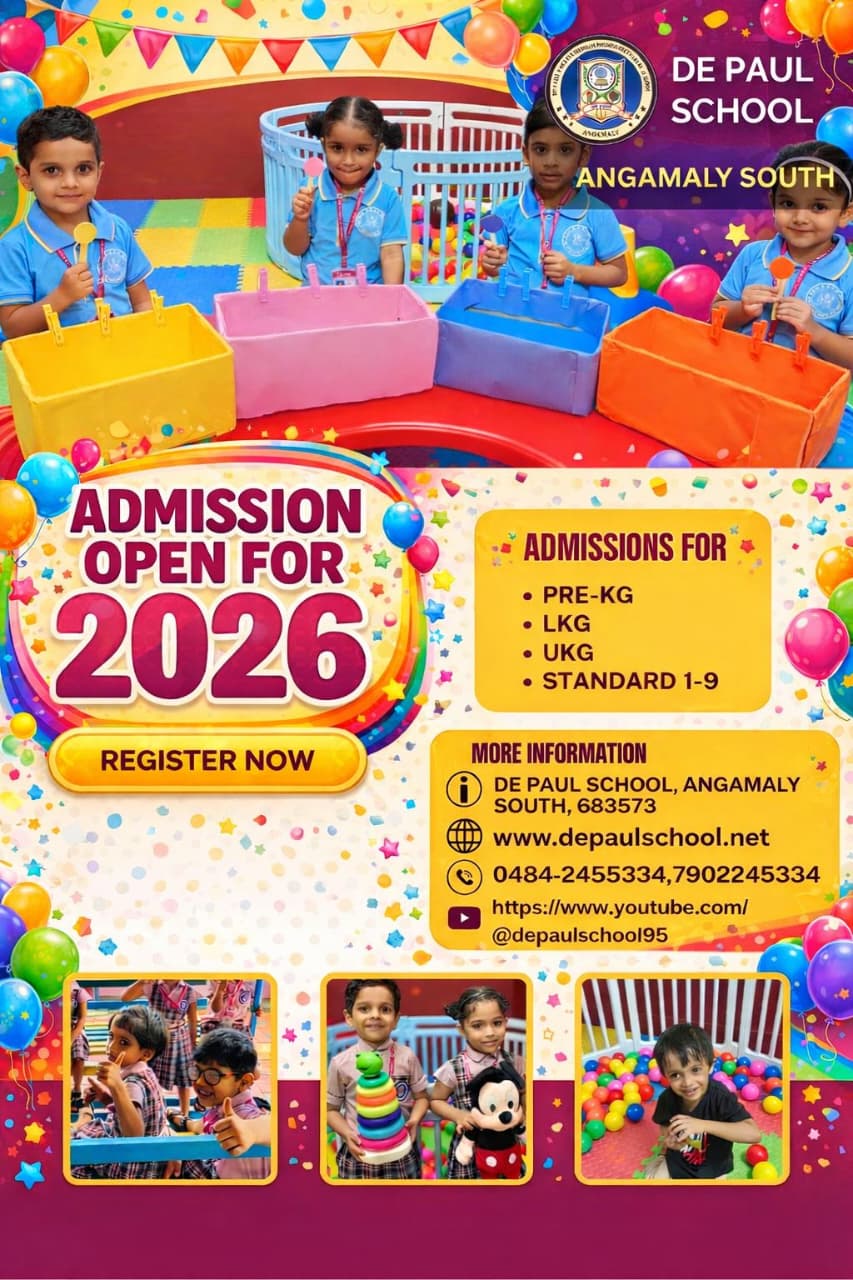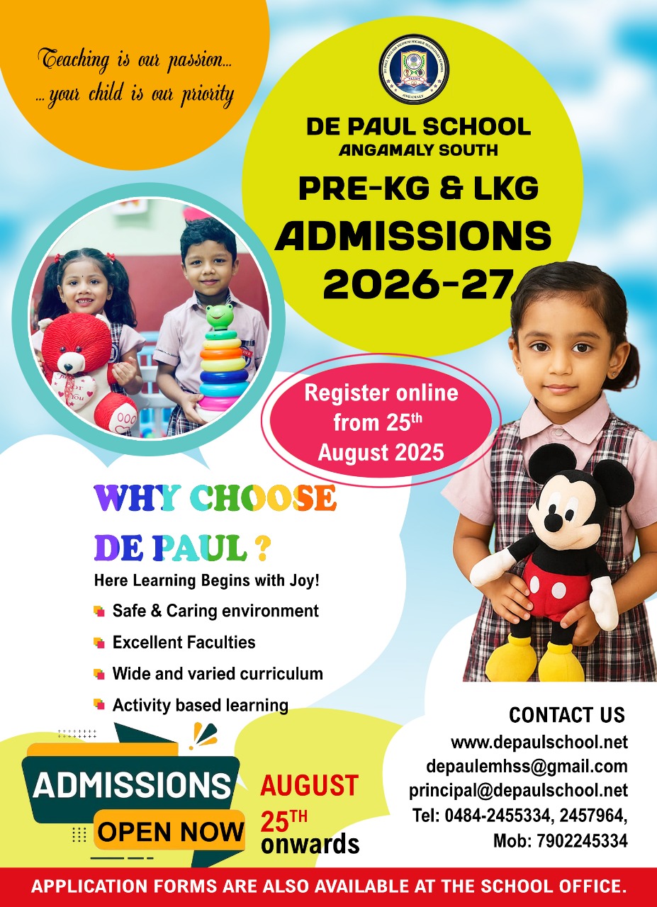 DePaul School is now accepting applications for Pre-KG, LKG, UKG, and Classes 1 to 9 for the academic year 2026-27. Provide your child with a strong academic foundation, experienced faculty, and a safe, nurturing environment that promotes holistic development, creativity, and lifelong learning. Enroll now at DePaul School and give your child the opportunity to excel academically and grow personally in a vibrant learning community. Apply Now